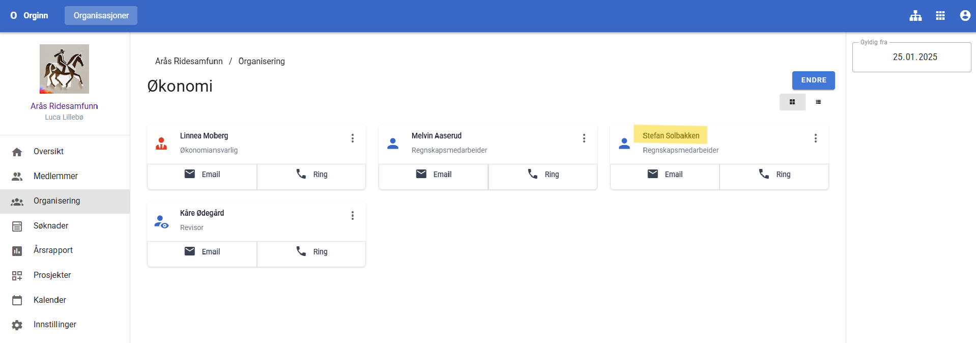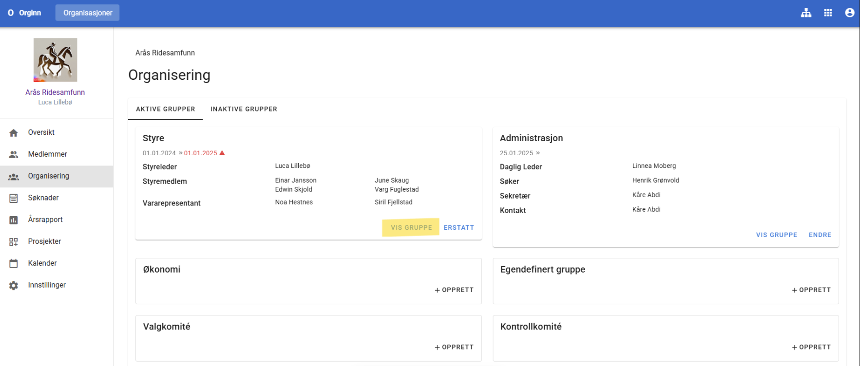 Orginn gir tilgang til personer som er autorisert med en rolle, for eksempel Styreleder, Styremedlem eller Søker. Rolletype bestemmer brukertilgang. Derfor vil styreleder ha mer brukertilgang enn styremedlemmer.