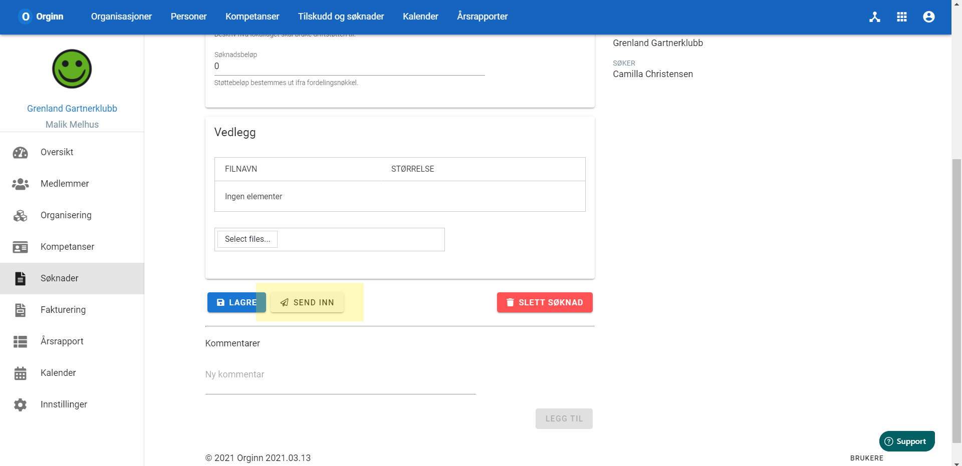 5. Velg Send inn for å sende inn søknaden til sentralleddet.