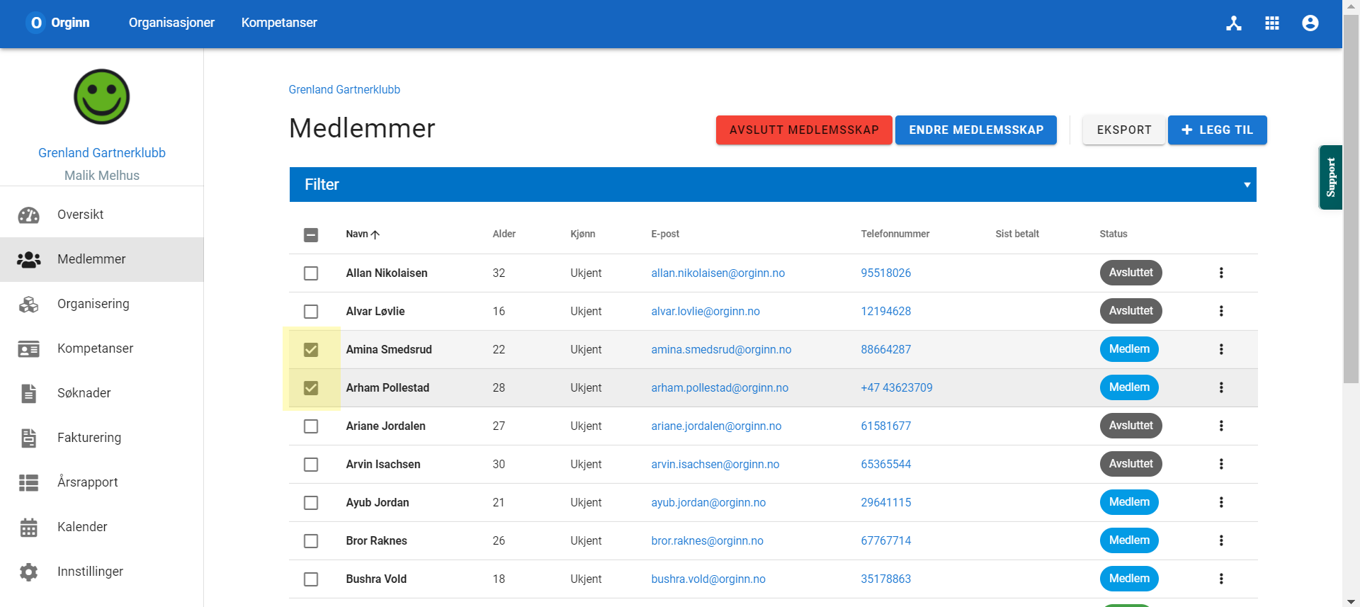 1. Huk av som vist på bildet under, for å markere personer du skal endre medlemskap for